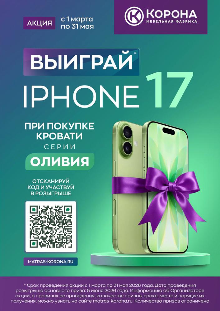 Купи кровать Оливия — выиграй iPhone 17